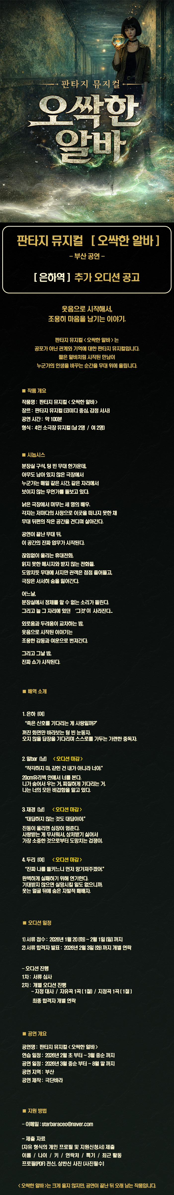 판타지 뮤지컬 [ 오싹한 알바 ] _<은하역> 추가 오디션 공고 - 부산